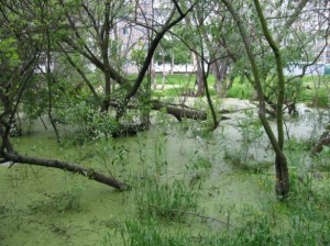 Сначала подумал – лужа. Но насторожил тот факт, что лужа поросла ряской – значит она здесь не после последнего ливня, а постоянно.