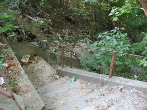 Не спеша, внимательно глядя под ноги, иду вниз. Лестница крайне запущена, потихоньку разваливается, неудивительно будет, если скоро исчезнет совсем.