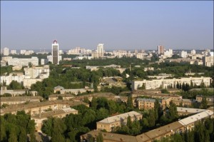 Вид на юг – Первомайский массив, слева – трубы ТЭЦ-5 и Апелляционный суд.