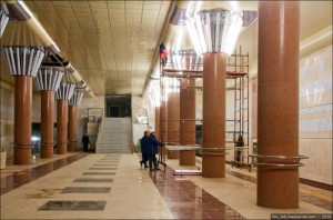 Станция имеет максимальную готовность среди своих сестер как в отделке, так и в оборудовании. Нынешний свой вид она обрела еще в 2008 г. Сейчас же устраняют лишь мелкие недоделки, занимаются наладкой оборудования и служебными помещениями. Выход в торце станции, который вы видите на фото, аварийный: