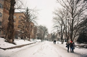 Улица Политехническая, которую лет 5 (или около того) назад перекрыли и сделали пешеходной, поставили фонарики и лавочки