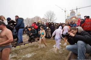 Сначала желающих померзнуть было мало, но смотря на выходящих из воды счастливцев, многие снимали с себя одежду и полезали в прорубь