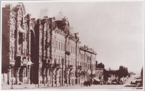 Владимирская улица, 1890-е гг. Светопечать. С.В. Кульженко Строгая величавость всегда была свойственна застройке Владимирской улицы. Слева, в центре, дом Общественного собрания, ниже помещался грузинский винный погреб "Замок Тамары", упоминаемый в романе "Белая гвардия". Многоэтажные здания сохранились