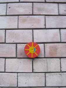 В качестве точки: очень странный объект на стене около Майдана. Это, по-моему, новая техника, и при этом чистый стрит-арт: объемный мини-объект из дерева, украшенный аппликацией и приклеенный к стене. Такого у нас еще не было.