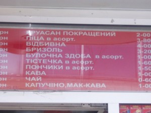 Еще одна "фишка Киева"- Обратите внимание на верхнее блюдо в меню.Мы тут же выдали пару продолжений- круасан переработанный, повторного сипользованния и т.д.