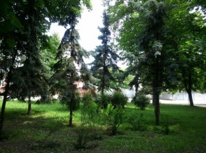 Вот эти елочки во время реконтсрукции были посажены уже довольно большими и бережно поддерживались колышками, чтобы не свалило ветром: