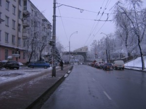 Начало улицы Вышгородской.Собственно это еще Приорка.Все ,что идет севернее ЖД насыпи называется Приоркой,хотя это историческое название мало используется современными киевлянами ,а приезжим и вовсе неизвестно.