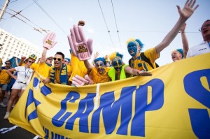 Наплясавшись и накричавшись шведы выстроились в колонну и пошли по городу