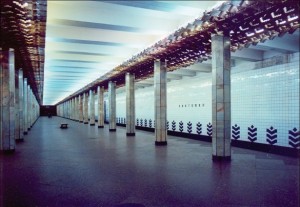 90-е годы. Световая линия ранее была выполнена как закарнизная. В конце 90-х старые элементы из оргстекла заменили более современными алюминиевыми панелями с заменой в т.ч. и самих светильников