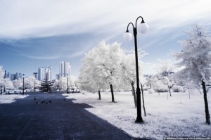Это новенький, хорошо забытый старенький, парк на Позняках. Сейчас тут очень зелено, для ИК-съемки очень подходит