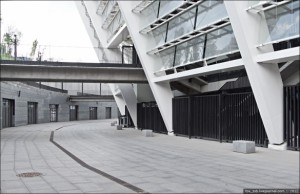 Между эстакадой и фасадом оставлен проход для зрителей нижнего яруса. Все эти манипуляции с эстакадой, мостиками и проходами сделаны для более удобного разделения потоков зрителей.