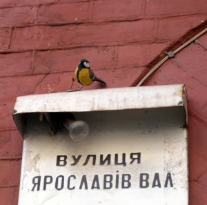 Вот синичка на Ярославском валу, прямо на номере Дома с обезьянами. Похоже, именно с этой синицы все началось.