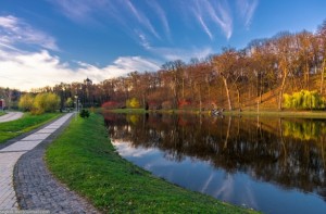 Мало кто знает, что для придания парку современного вида, пришлось вырубить значительно количество лиственного леса, который на Киевщине встретишь не часто. К примеру – вместо этого озера и дорожек слева росли деревья…