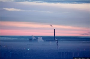 Осень славится своими туманными рассветами. В день съемки все левобережье было залито дымкой с островками из тумана. На фото: ТЭЦ-6 и кусочек Воскресенки.