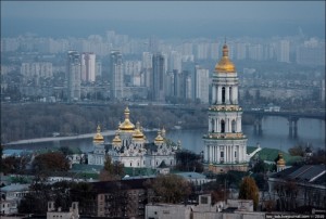Киево-Печерская лавра. На заднем плане ЖК "Серебряный бриз", Березняки и мост Патона.
