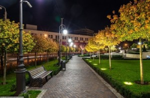 В парке удивительно и непривычно чисто. Быть может, благодаря тому, что территория круглосуточно охраняется? Когда я пришел, охранник, сидящий на лавочке, явно скучал и играл в игры на телефоне.