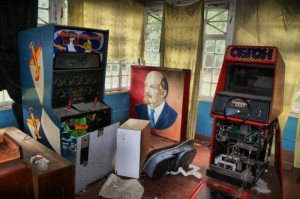 Опять Ленин, но уже в павильоне игровых автоматов Начинка многих автоматов раскуроченная, вероятно искали цветные металлы