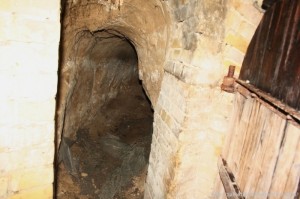 А это ответвление, признаться, повергло нас в недоумение! В тупике кирпичной ниши, прорыта вручную копанка прямо в лесе! Немного пройдя, если можно так сказать, на четвереньках по этой галерее, я просветил обвал в конце хода, который перед этим резко сужался