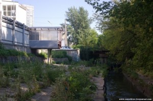 Дошли до ул. Физкультурной, тут одна киевская контора обустроила для своих сотрудников чудесную беседку-курилку, с видом на Лыбедь. Однако эти негодяи перманентно засоряют ее окурками, бутылками и прочими отходами. Хотя учитывая масштабы общего загрязнения реки – это капля в море.