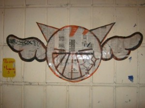 Где-то в подземном переходе. Любопытная работа, по-моему.