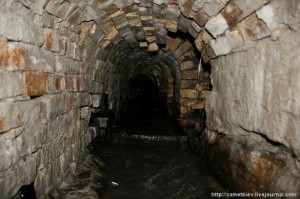 Очень узкий (на фото оптический обман, нету предметов для масштаба) кирпичный ход, ровесник (1838-1839 гг постройки) башни идёт прямиком под ее фундамент