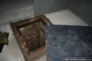 Поднявшись в распорах в колодец и откинув крышку люка, можно попасть прямиком в подвалы башни. Обратите внимание на следы на люке оставленные солдатскими сапогами. Сейчас в башне дислоцируется батальон внутренних войск.