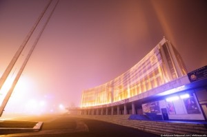 Двигаемся в центр. Здесь туман не такой густой как на левом берегу, но что-то все же есть. Дворец Украина никак не подсвечивается, экономят на электричестве 🙁 А выглядел бы классно