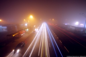 Вчера даже как-то удивился. Сто лет такого сочного тумана не видал. 30-секундная выдержка на Позняках. Зрелище классное, автомобили будто выныривают с пустого пространства