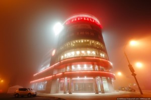 "Дарница" на ленинградской площади. Я бы сказал, что в дымке здание похоже на космический корабль и только рядом дежурящие космобольцы ГАИ напоминают, что мы еще на Земле))