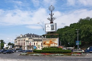 Площадь у купеческого собрания (сегодня — филармония) раньше выглядела куда более композиционно целостно и уютно, чем сегодняшняя Европейская площадь. В центре стоял один из фонтанов Термена, а аллея, ведущая к обзорной площадке была обозначена аркой невероятной красоты. Сегодня у смотровой площадки тоже стоит радужная арка, а под ней — два полуобнажённых парня, символизирующих дружбу Украины и России. Снять Европейскую площадь с такой же высоты не получилось — холл гостиницы слишком высокий и к окнам не подойти изнутри.