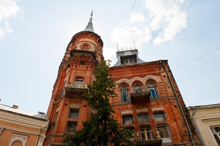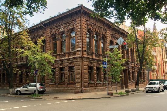 Особой популярностью среди этих особняков пользуется строение в усадьбе на углу улиц Лютеранской, 23 и Банковой. Его необычный облик, сложный силуэт, замысловатые архитектурные детали служат прекрасным образцом стиля модерн. Фасады особняка отделаны разнообразными материалами: гранитом, бетоном, кованым металлом, кирпичом или керамической плиткой под кирпичную кладку; капитальная ограда участка составляет неразрывное целое с домом. Самое заметное …