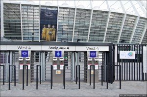 Проход на стадион в дни матчей или других мероприятий осуществляется с помощью 108 турникетов немецкого производства. Средняя пропускная способность каждого турникета заявлена как 650 зрителей в час. Т.е. этого должно быть достаточно, чтобы наполнить комплекс зрителями под завязку меньше, чем за час. Турникеты уже успели получить народную славу "частоломающихся" и "неработающих", но справедливости ради следует заметить, что проблемы зачастую возникали не с турникетами, а с отдельными зрителями, которые пытались пройти по уже использованным билетам и, соответственно, блокировали остальной поток позади себя.