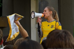 Тут немного описания того что происходило возле касс стадиона имени Лобановского. Карточек нет, т.к. я не думал что в итоге буду снимать. Итак, работает одна касса и людей в ней как до противоположной кассы и ещё чуть-чуть. На вопросы чего они тут стоят все делают вид что нас не слышат. Как вежливо с их стороны. Ну мы и пошли к стадиону. По дороге случайно подслушали: "Хорошо что билеты взяли, а то бы без футболок были". Возвращаемся, становимся в очередь. За 2 минуты очередь вырастает в 2 раза. Через ещё 2 выясняется что кассу просто закрыли и ушли. Очередь ещё немного стоит, а потом расходится. Файна Юкрайна. Я не удивляюсь, я был готов к чему-то подобному. Про бесплатные билеты ничего не говорили на официальном сайте, хотя идея, в принципе, хороша, только как всегда не реализована до конца. Двигаемся к стадиону снова, там меняют корешки от билетов на футболки. Никакой очереди 10. Девушка яростно кричала на всех и вносила суматоху в такую безобидную процедуру как получение футболок. Она кричала: "Отошли все от забора! На шатайте забор! Так, тем что слева футболки не давать!" Из толпы: "Чтоб тебе всю жизнь не давали". После этого немного попустилась.