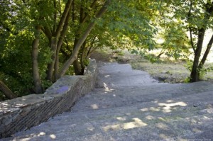 Там ще якісь сходи є, які нікуди не ведуть. Далі знизу тільки розбиті пляшки, порожні сигаретні пачки та імпровізований туалет, що символізує єднання людини з природою.