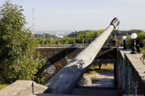 Вау! Як оригінально зроблено. Напевно, ніхто досі промінь прожектора не робив бетонним. Називається ця робота "Промінь світла", автор Жанна Кадирова.