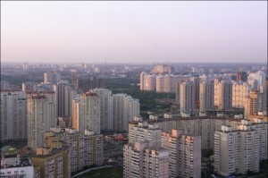 Вид на север, видна Троещина, Алмазное озеро и ТЭЦ-6.