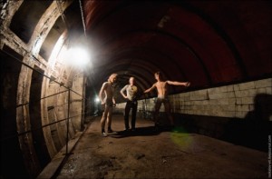 Что-бы попасть на станцию, нам пришлось раздеться (что-бы не испачкать одежду) и проползти честных 30 метров по грязному и мокрому бетону.