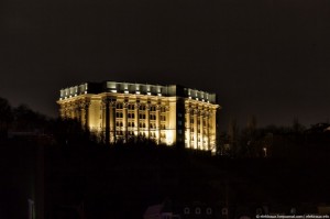 Можно сказать, часть новогоднего Киева. Здание Министерства иностранных дел. Снимок сделан в 01.01.2012 в 00:00:20 в то время, как где-то недалеко гремел праздничный фейерверк. Как-то потерялся этот снимок, негде было его показать до этого.