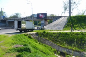 Цікаво, що залізничний міст тут колись був саме через Сирець, і лише потім під цим мостом проклали ще й дорогу. Ймовірно, з мостом над Танковою та ж історія