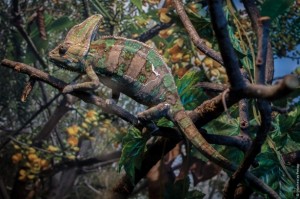 Йеменского хамелеона, как и положено, трудно заметить в буйной искусственной растительности